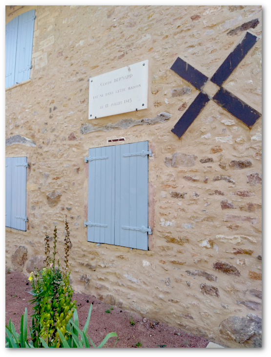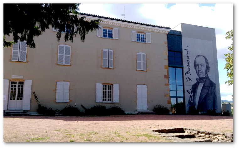 La maison natale, devenue Musée Claude Bernard, 69640 St-Julien-en-Beaujolais. C’est en réalité la maison de maître dont dépendait la métairie où Claude Bernard est né, maison qu’il acheta en 1861. Il se retire temporairement ici en 1865, souffrant d’atteintes de choléra, pour écrire Introduction à l’étude de la médecine expérimentale.