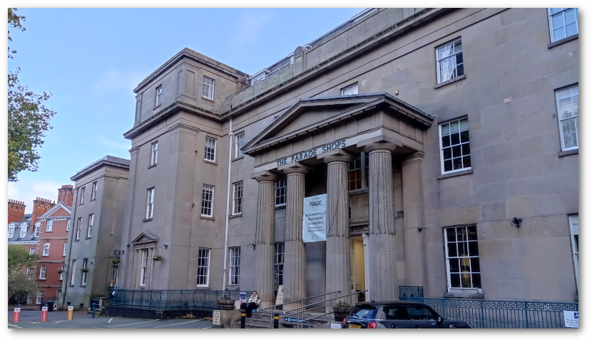 The Parade Shops, derrière l’église Ste Mary. C’était depuis les années 1740 l’hôpital local. Robert Darwin y devient médecin en 1788 et le restera jusqu’en 1831. Le bâtiment que l’on voit aujourd’hui date de 1830.